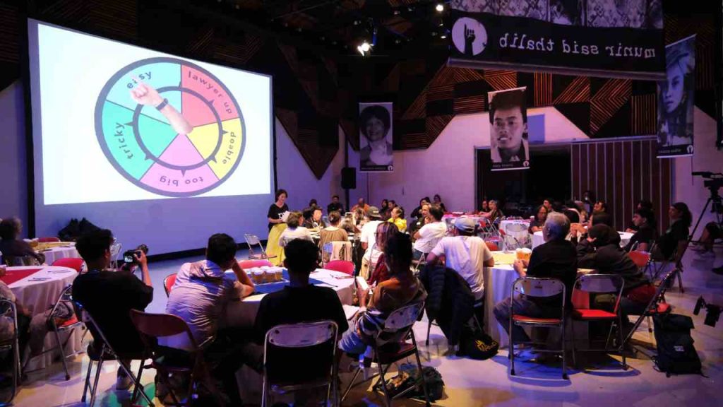 tiny revolutions adalah sebuah proyek partisipatoris yang bertujuan untuk mengembangkan iklim perlawanan kreatif dalam menanggapi tantangan global paling besar yang dihadapi masyarakat saat ini. mulai dari krisis iklim hingga kemajuan teknologi yang pesat, hak-hak minoritas hingga patriarki, ‘tiny revolutions’ bertujuan untuk mengambil skala besar dan kegelisahan dari isu-isu ini dan mengubahnya menjadi aksi-aksi kecil yang memiliki dampak sosial yang besar. tiny revolutions didasarkan pada millennium project 15 global challenges. the millennium project telah mengidentifikasi 15 tantangan global bagi umat manusia, dan memiliki berbagai cara yang berbeda untuk merespons dan memberikan perhatian pada setiap tantangan tersebut. pada bulan juli dan agustus 2025, di bawah bayang-bayang kegelapan, para revolusioner lokal indonesia akan berkumpul di jogjakarta dan jakarta untuk membongkar karya-karya publik lokal yang membuat masyarakat terjaga di malam hari. bersama para penonton dan seniman lokal, mereka akan berdiskusi, berembuk, dan menyusun ide-ide yang bertujuan untuk mengubah dunia – satu revolusi kecil dalam satu waktu.